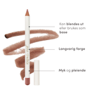 Myk og pleiende leppeblyant for definisjon og kontur. Fargen er langvarig og skaper en perfekt base.