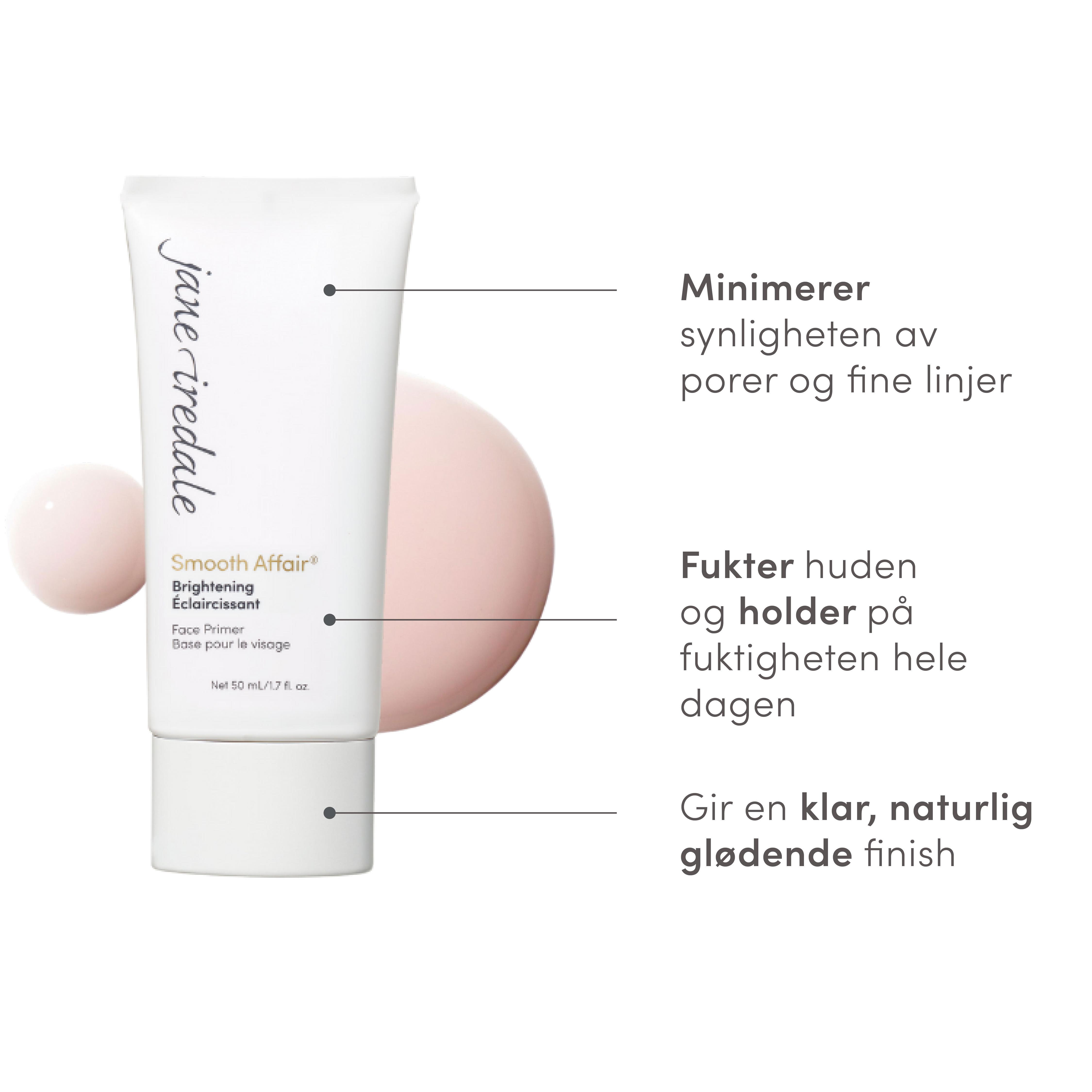 Minimerer synligheten av porer og fine linjer og gir glød