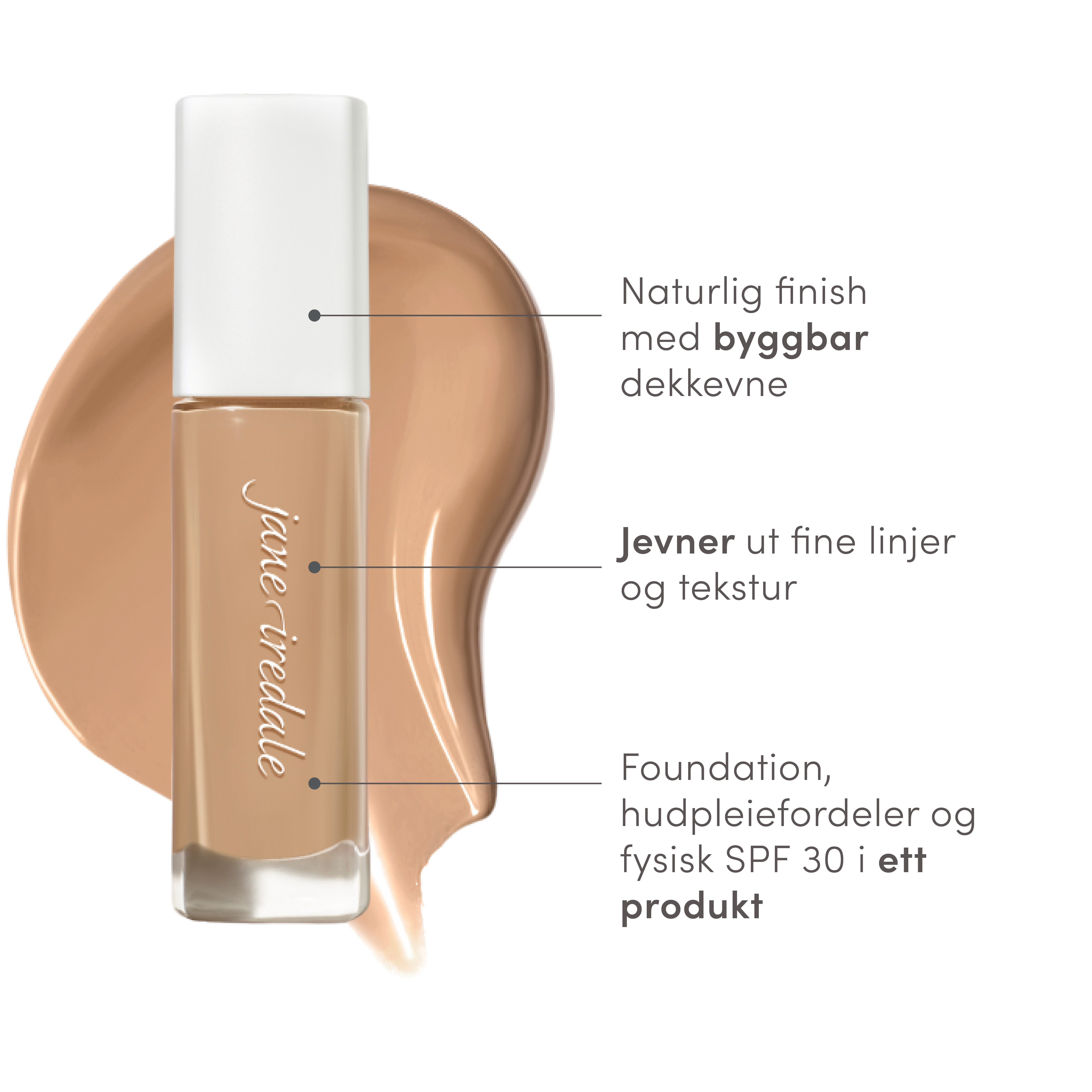 Middels dekkende, byggbar og flytende foundation med SPF 30